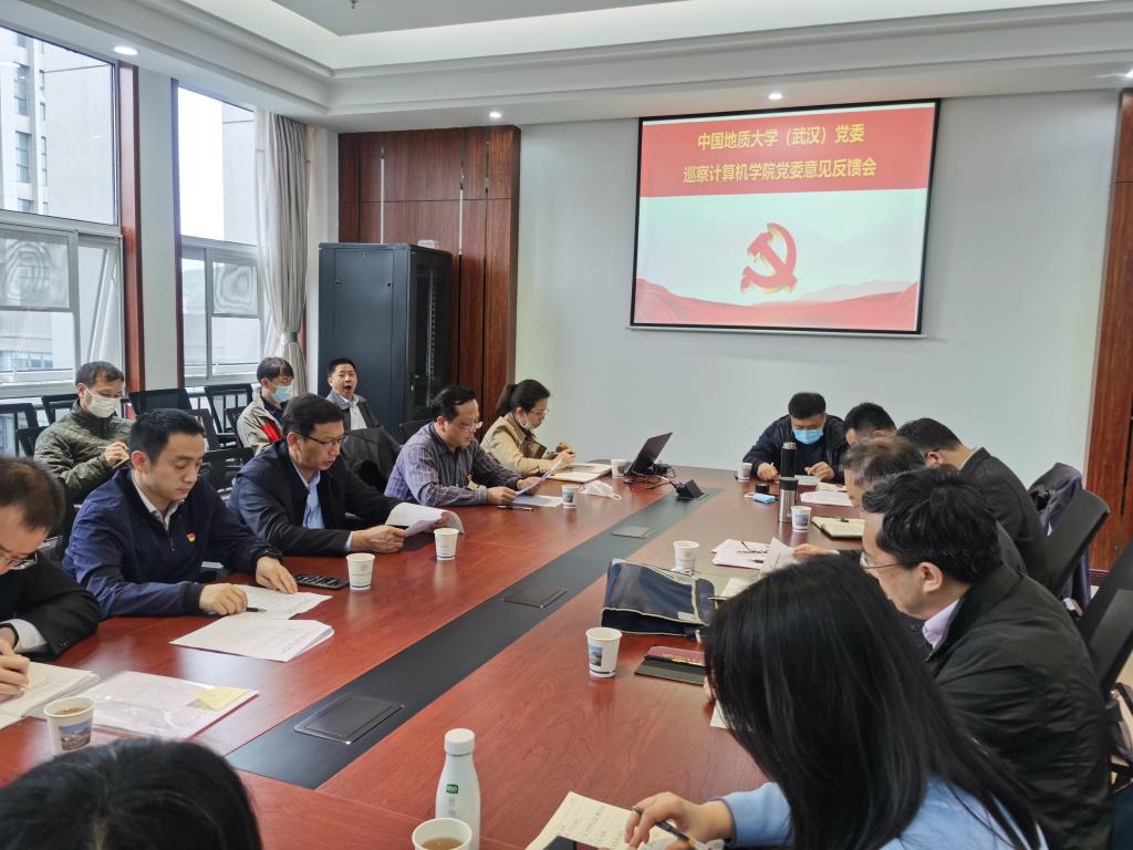 (通讯员:石剑峰)2021年4月22日,中国地质大学(武汉)党委巡察资源а√天堂中文中文在线党委意见反馈会在南望山校区B708召开。校党委副书记、纪委书记成金华出席会议,学校党委第二巡察组组长帅斌、副组长吴堂高和成员王浩、吴迪,监察处副处长晋曦、资源а√天堂中文中文在线领导班子全体成员、三级单位主要负责人、工会主席、团委书记、教师代表和学生代表参加会议。
