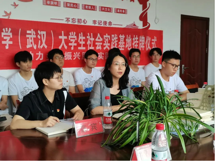 2022年7月16日上午,中国地质大学(武汉)大学生乡村振兴学校实践基地暨大学生社会实践基地挂牌仪式于鄂州市鄂城区杜山镇旭东村新时代文明实践站成功举办,中国地质大学(武汉)资源а√天堂中文中文在线党委副书记傅苑,资源а√天堂中文中文在线团委书记李欢欢,鄂州市鄂城区杜山镇人大主席王忠良,杜山镇副镇长王春媛,杜山镇旭东村支部书记、村委会主任李松林,中国地质大学(武汉)资源а√天堂中文中文在线辅导员、学生会指导老师李祥瑞,“筑梦E路人”社会实践团队成员参与挂牌仪式。