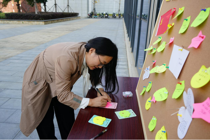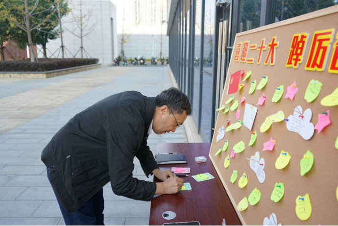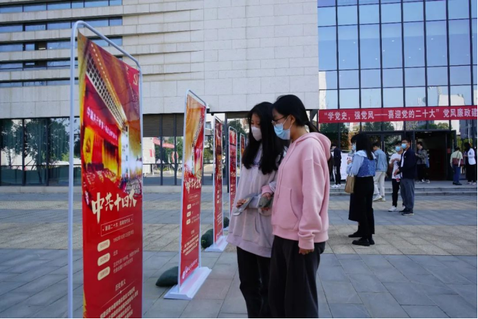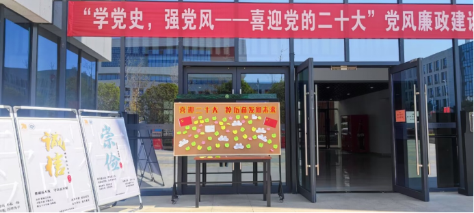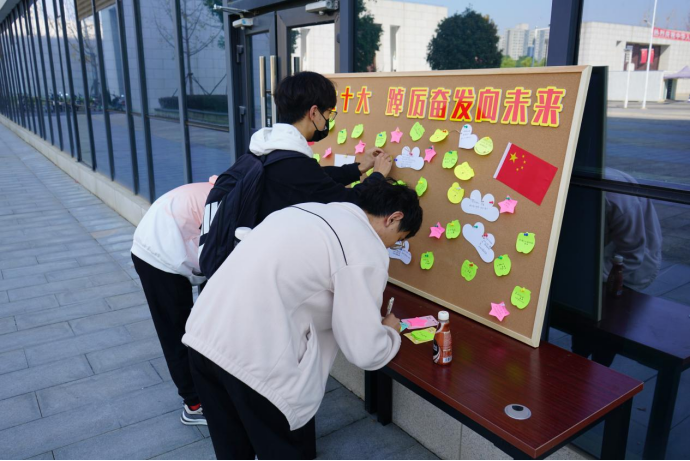 16日上午,学院策划制作的“党风廉政建设”宣传展板,中国共产党历次党代会重点内容学习海报以及“喜迎二十大,踔厉奋发向未来”祝福寄语墙在学院一楼展出,引发广大师生的驻足学习、热议。其中,历次党代会学习海报以色彩鲜明的图文形式,生动描绘了从党的一大到十九大的历史背景和意义,启发师生们切身感受“学党史,强党风”的深刻内涵。在“喜迎二十大,踔厉奋发向未来”祝福寄语墙上,师生们留下了“凝心聚力新时代,团结聚力新征程”、“时间砥砺前行,岁月见证初心”、“青春向党,不负众望”的美好祝福和铮铮誓言。