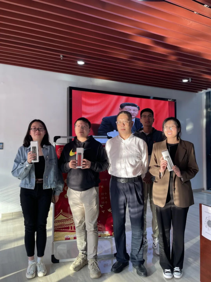 16日下午,校党委副书记、纪委书记唐忠阳一行来到活动现场并与师生亲切交流。唐忠阳观看了党风廉政建设宣传展板和历次党代会学习海报,为获得“党风廉政知识竞答”活动一等奖的学生颁发奖品并合影留念。