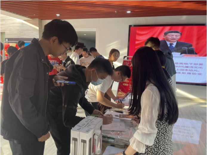 为庆祝党的二十大胜利召开,学院纪委于10月16日在资源а√天堂中文中文在线大楼举行“‘学党史,强党风——喜迎党的二十大’党风廉政建设”主题教育活动,学院师生共同参与此次活动。