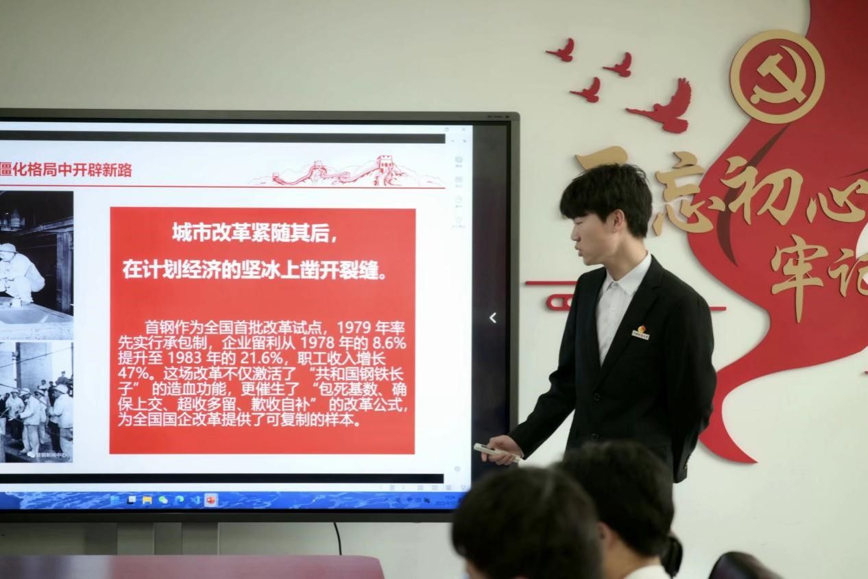 各支部选题多样、内容丰富,以多元化的视角还原党史经典场景。本科生软件工程党支部向婷以党的十一届三中全会的故事引出改革开放的伟大历程对我国经济建设初期以及当今发展的重要意义。本科生国际合作专业党支部金汤悦用武汉这座城市在改革浪潮中的故事,突出强调了改革在武汉乃至整个湖北省的发展历程中的重要地位。本科生空信党支部多名成员以诗朗诵的形式为我们讲述了改革开放以来中国发生的惊天巨变。