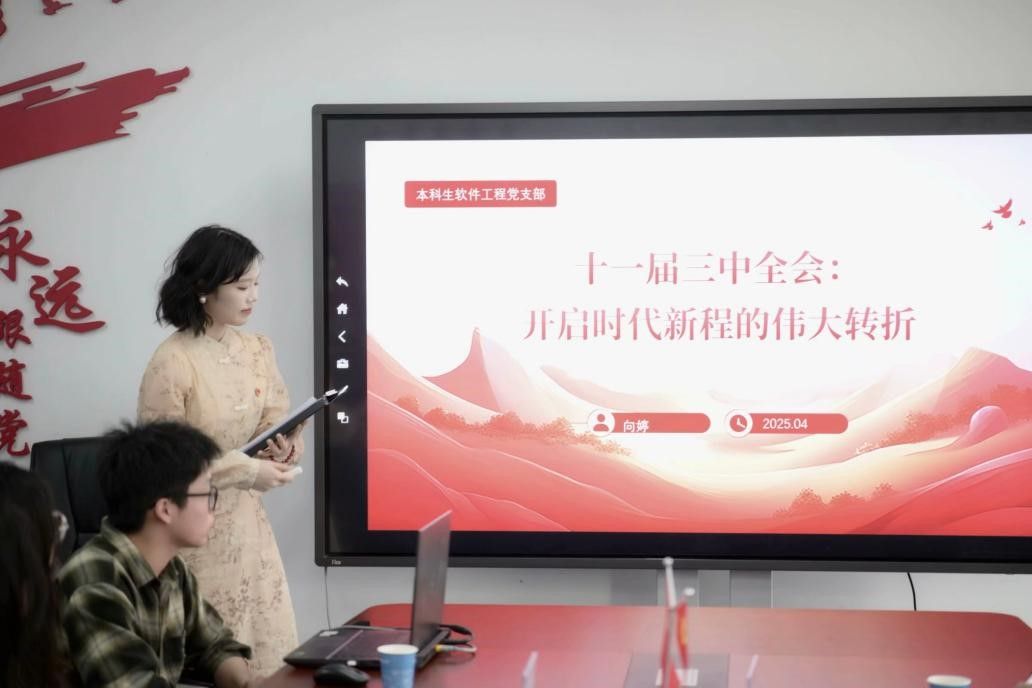 194221团支部朱琳用浙江的变化引出党的十一届三中全会所提出的改革开放对于整个中国发展的意义。本科生智科党支部盛梁通过清晰的阐述党的十一届三中全会所处的背景、所做的突破、开辟的新格局以及为后世开创的新未来这四个方面展现出了党的十一届三中全会的精神血脉对于全中国的重要意义。本科生大数据党支部李雪汶通过讲述不同时期的青年力量,提广大青年要继续坚定改革创新的立场。19C246团支部马艺萱带领大家回顾共青团的历史,激励青年学生勇于开拓、创造。学硕联合第一党支部渠继震从经济发展的角度回顾历史,提出了全面加强党的领导以及推进改革开放的重要意义。