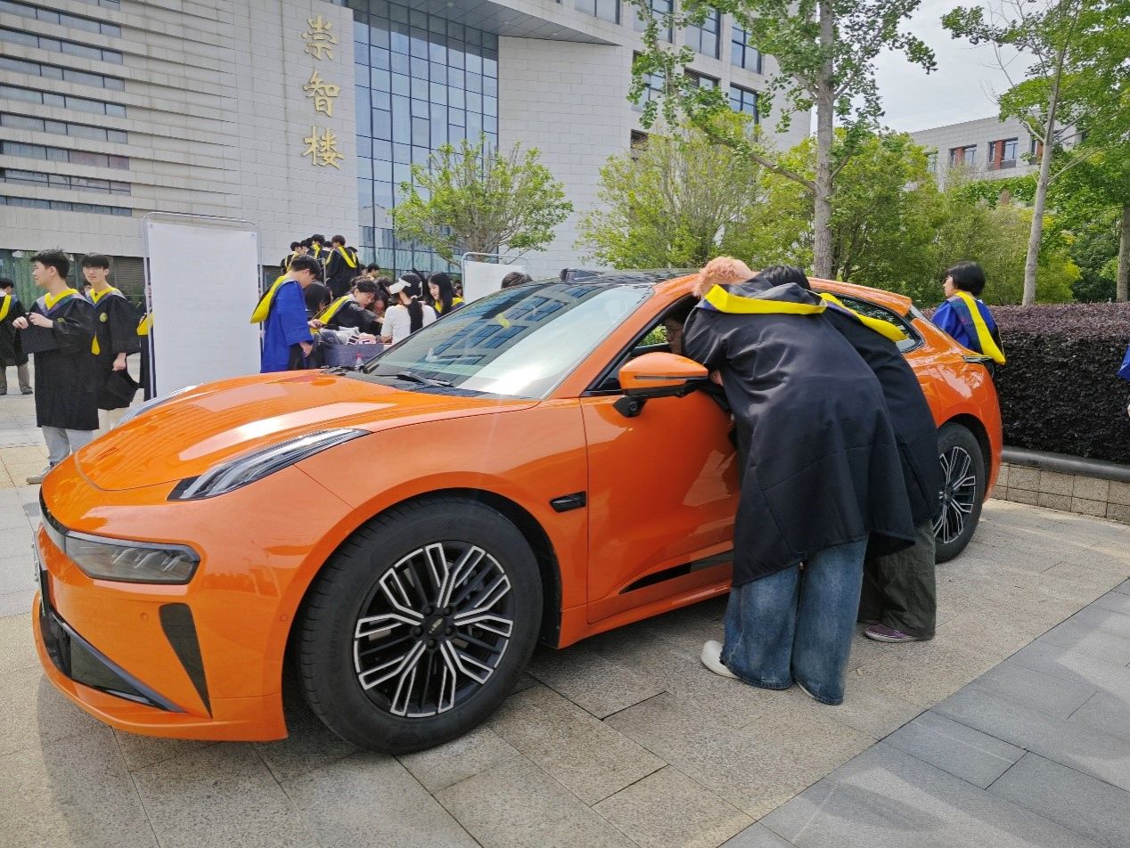 活动还特别设置了“校企直通车”招聘快闪环节,极氪在车辆后备箱和活动现场布置了本集团及其合作企业的最新招聘简章,欢迎毕业生现场投递简历,并送出专属定制车形书签留作纪念,实现“毕业即就业”的无缝衔接,也让“服务学生发展”落到实处。