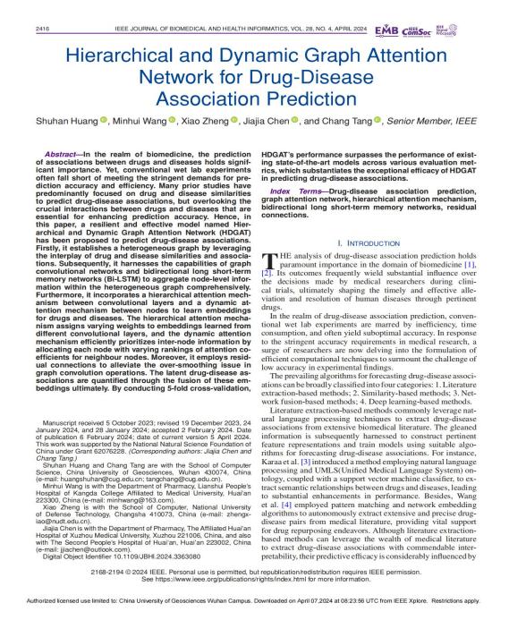 个人简介:黄舒涵,男,共青团员,来自广东深圳,中国地质大学(武汉)资源а√天堂中文中文在线2021级软件工程专业,科研导师为唐厂教授。平均学分绩点为4.18/5.0,位列专业第一(1/99),英语六级成绩为549分。本科期间在唐厂教授的指导下,以独立第一作者身份产出2篇学术论文,其中第一篇已发表在中科院SCI计算机类一区期刊《IEEE Journal of Biomedical and Health Informatics》(IF=7.1,已见刊)上,第二篇投稿至中科院SCI计算机类一区期刊《Information Fusion》(IF=16.1,大修返修中),获得软件著作权1项。此外,在校曾获多项荣誉奖项,如国家奖学金、信息拔尖人才奖学金、第十一届“泰迪杯”数据挖掘挑战赛全国一等奖等。目前已成功保研至清华大学深圳国际研究生院数据科学和信息技术专业,并在百度进行算法实习。