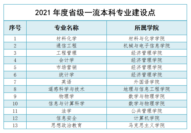 近日,根据《教育部办公厅关于公布2021年度国家级和省级一流本科专业建设点名单的通知》,我院软件工程专业、空间信息与数字技术专业成功入选国家级一流本科专业建设点,信息安全专业入选省级一流本科专业建设点,是我院本科专业建设的新突破!