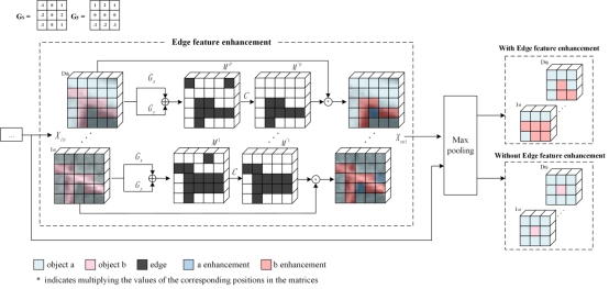 针对上述问题,本研究构建了一个矿区精细占地类型遥感智能解译框架模型(EG-UNet),该模型在增强矿山占地特征的同时,能够捕获其长距离信息。该框架包括两个主要模块:1)边缘特征增强模块。矿山占地边缘相较于空间位置,包含更关键的遥感图像敏感信息。因此,本研究在特征提取过程中,基于权重矩阵对边缘进行特征增强,进而更好地保留这些特征;2)长距离特征提取模块。构建长距离特征提取模块,有助于获取矿山占地小面积图斑特征。本研究通过图卷积网络来捕获长距离特征,并应用卷积神经网络来学习图的构造。