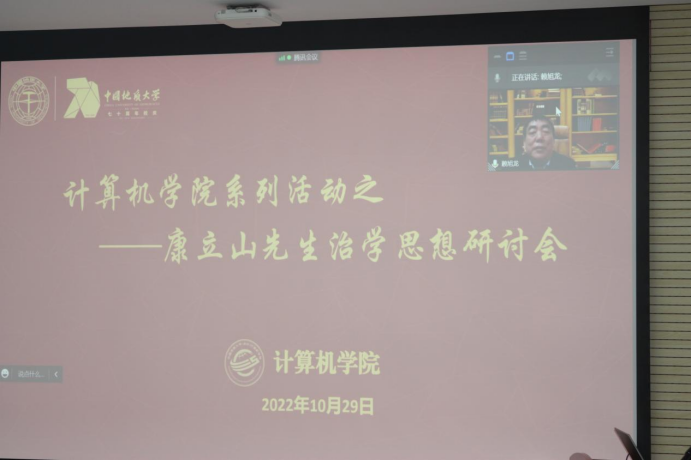 赖旭龙在致辞中表示,康立山先生是知名的计算机专家,1995年任中国地质大学兼职教授,2002-2008年任中国地质大学资源а√天堂中文中文在线首任院长,2009年8月9日因病去世。他谦逊平和、治学严谨、务实创新,无论是在学科发展、人才培养、国际合作、军民融合等方面,都为资源а√天堂中文中文在线作出了历史性贡献。当前正值全国上下学习宣传贯彻党的二十大精神、全校上下迎接七十周年校庆之际,资源а√天堂中文中文在线举行康立山先生治学思想研讨会,既是回忆康立山先生在地大资源а√天堂中文中文在线团结带领全院师生艰苦创业的奋斗历程,也是总结资源а√天堂中文中文在线20年来事业发展的宝贵经验,更是探索未来资源а√天堂中文中文在线高质量发展的新道路。衷心希望大家对资源а√天堂中文中文在线发展多提宝贵意见。