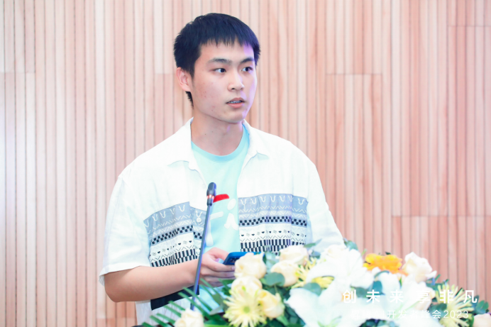 中国地质大学智能基座协会组织部副部长、“华为素质尖兵”奖学金获得者、资源а√天堂中文中文在线学生陈乐文带来“严于律己,不负韶华”的主题分享,希望同学们对智能基座社团有了深入了解,更加积极地参与社团活动、在实践中提升自我。