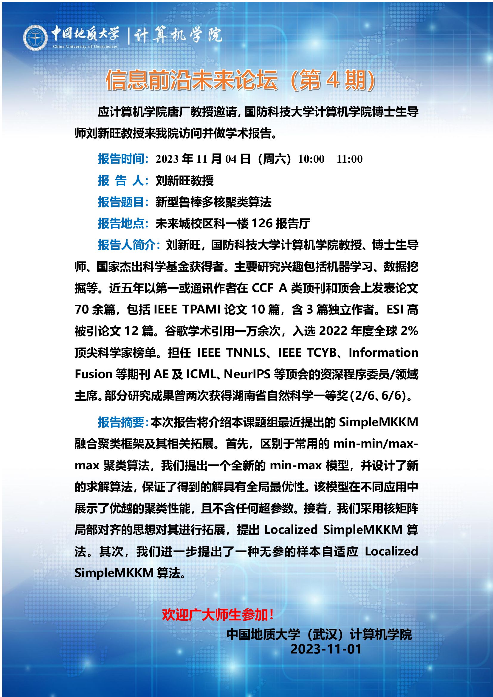 信息前沿未来论坛(第4期):国防科技大学刘新旺教授、合肥工业大学王杨教授