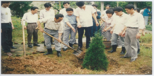 计算机系领导及办公室老师参加学校运动会(1989年)